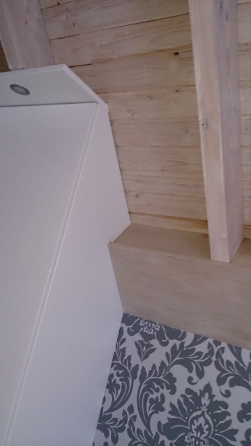In overleg met de klant heeft deze 2 IKEA PAX linnenkasten gekocht 1 kast hebben we aangepast aan het schuine dak zodat op de andere wand de maximale ruimte kon worden gebruikt om een linnenkast met hoekkast te plaatsen.